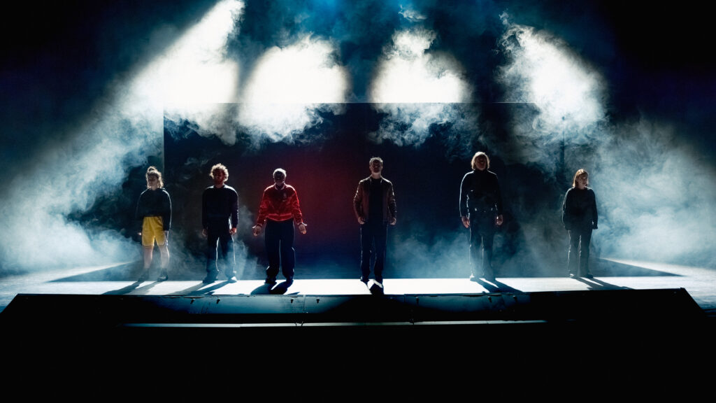 Texte et mise en scène Julie Lerat-Gersant – Avec Cindy Almeida de Brito, Laurianne Baudouin, Zoé Belloche, Walid Caïd, Eric Challier, Juliet Doucet et Thomas Germaine –Scénographie et création des lumières Eric Soyer – Régie lumières Malek Chorfi – Création sonore Clément Mirguet – Dramaturgie Juliette Alexandre – Regard chorégraphique Kaori Ito – Costumes Dimitri Lenin – Décors Ateliers du Préau – Production & Développement Cécile Jeanson – www.lepreaucdn.fr – © Alban Van Wassenhove